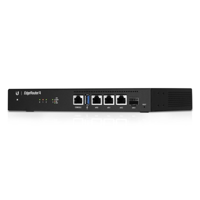 The all-new EdgeRouter 4 brings “high-performance at disruptive pricing” to a new level. With a 50% increase in performance compared to the EdgeRouter Pro, the EdgeRouter 4 delivers the performance your network needs. Paired with our feature-rich EdgeOS makes this a versatile tool in both Carrier-Grade and Enterprise networks.